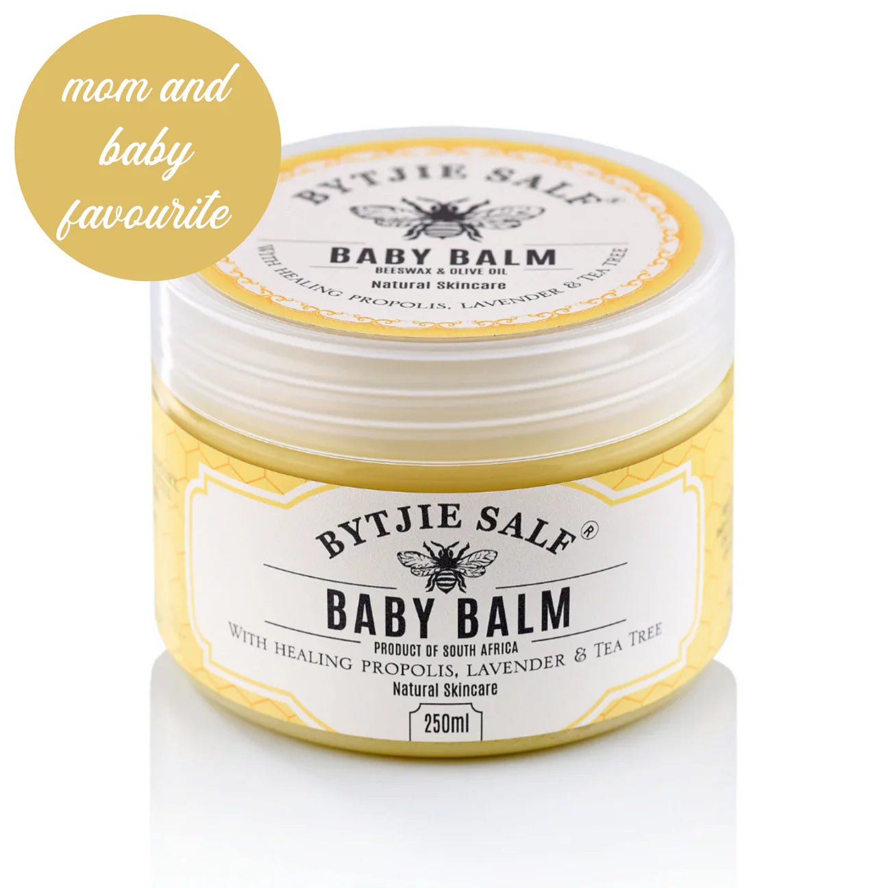 Apply as a barrier after every nappy change. Make sure baby’s bottom is clean and dry, then smooth onto the entire nappy area. Baby Balm can be used as a moisturising body butter after bath time. Other uses: nappy rash, minor bites & itches, cradle cap, cracked nipples and mommy’s wrinkles. Bytjie Salf is formulated with olive oil which has low allergenic potential, making it ideal to use on delicate skin. Safe to use with cloth nappies.